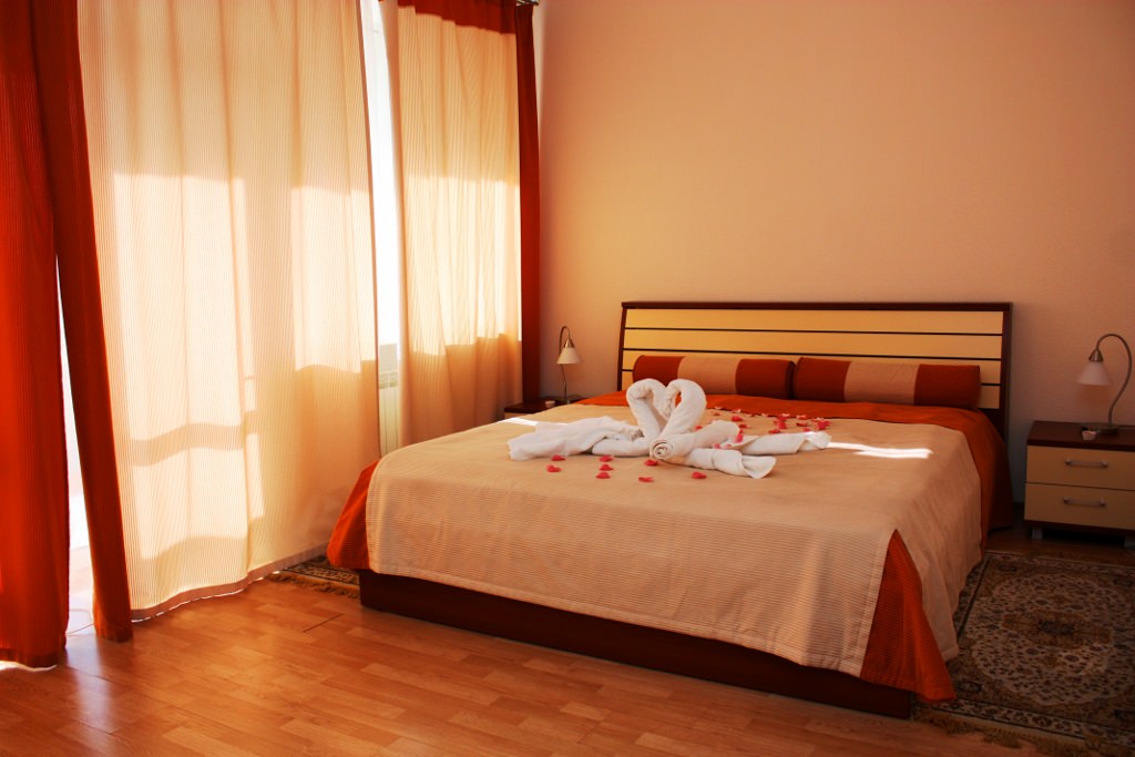 1 осн. место. 2 доп. места. Балкон: лоджия, с мебелью. Мебель: диван, кресла, кровать двуспальная, прикроватные тумбочки, столик журнальный, стулья, шкаф. Оборудование: кондиционер, телевизор, телефон, холодильник, чайная станция, электрочайник. Санузел: биде, с душем, туалетные принадлежности, фен. Сервис: Wi-Fi бесплатно, смена полотенец, смена постельного белья, уборка номера.